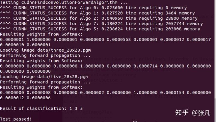 {% highlight shell %} cp -r /usr/src/cudnn_samples_v7/ $HOME cd $HOME/cudnn_samples_v7/mnistCUDNN make clean && make ./mnistCUDNN {% endhighlight %} If everything works, we can get our result ---- âtest passed!""