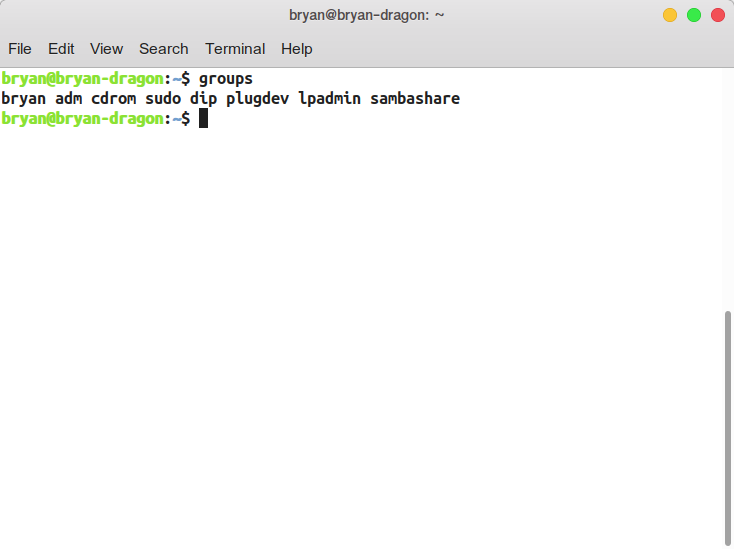 {% highlight shell %} groups {% endhighlight %} the first group is usually your group right now. Here is my result.